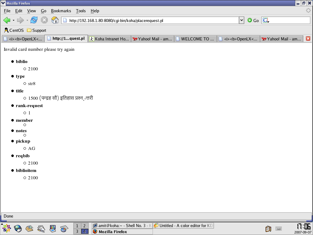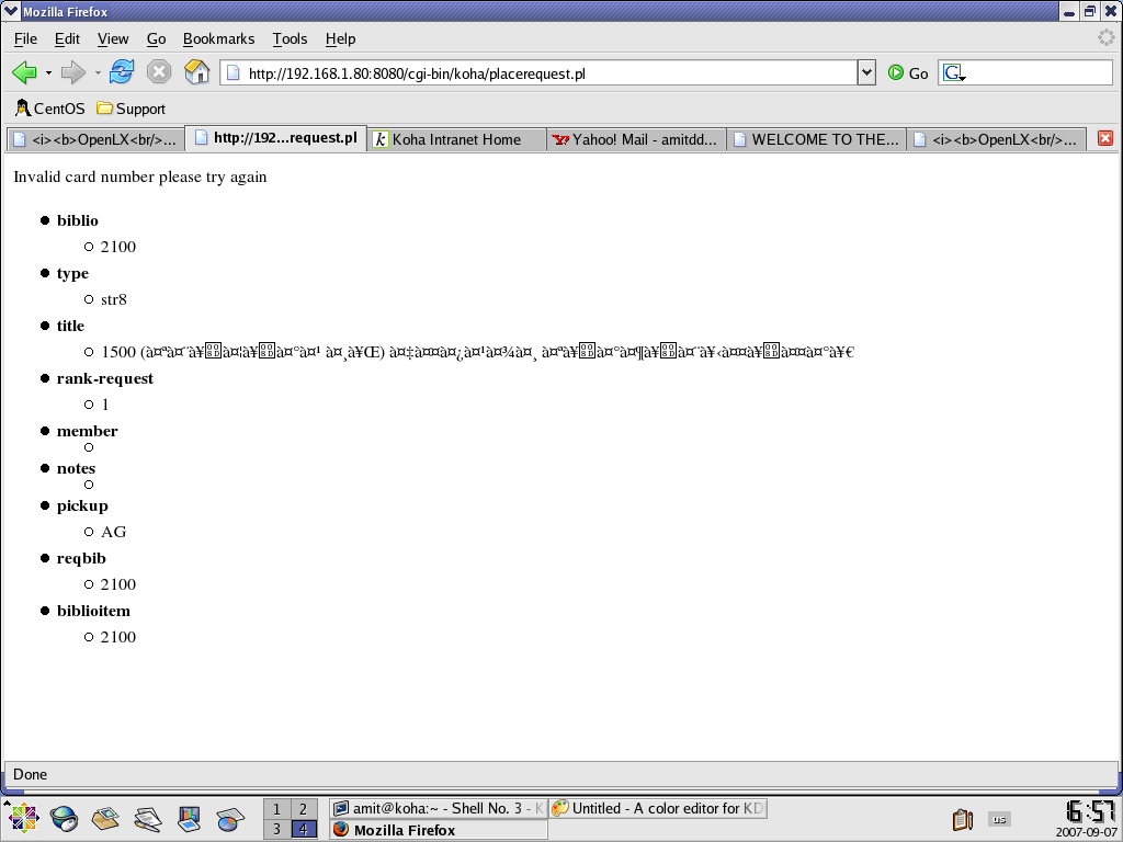 I am using koha 2.2.5 version on RHEL 4 all module is working fine